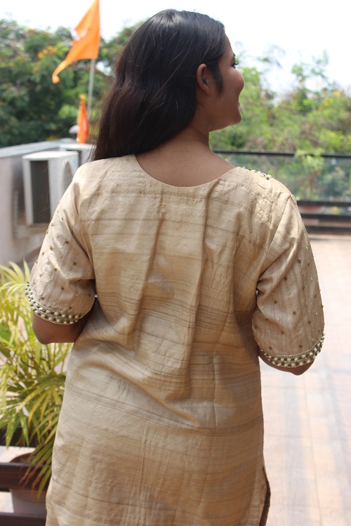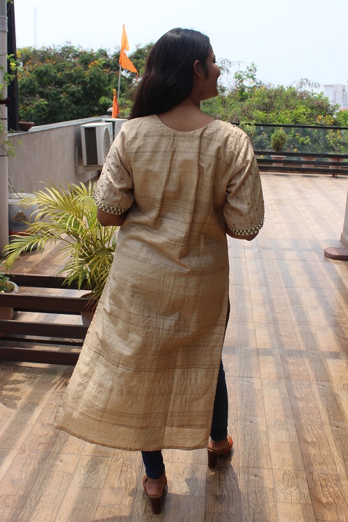 Pure Ahimsa Tussar/Kosa Silk hand-Embroidered Kurta.